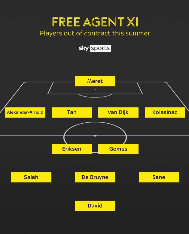 3月21日訊 天空體育列出今夏自由球員11人陣容,德布勞內(nèi)、薩內(nèi)在列,范迪克、阿諾德、薩拉赫三位利物浦球員同樣位列其中。