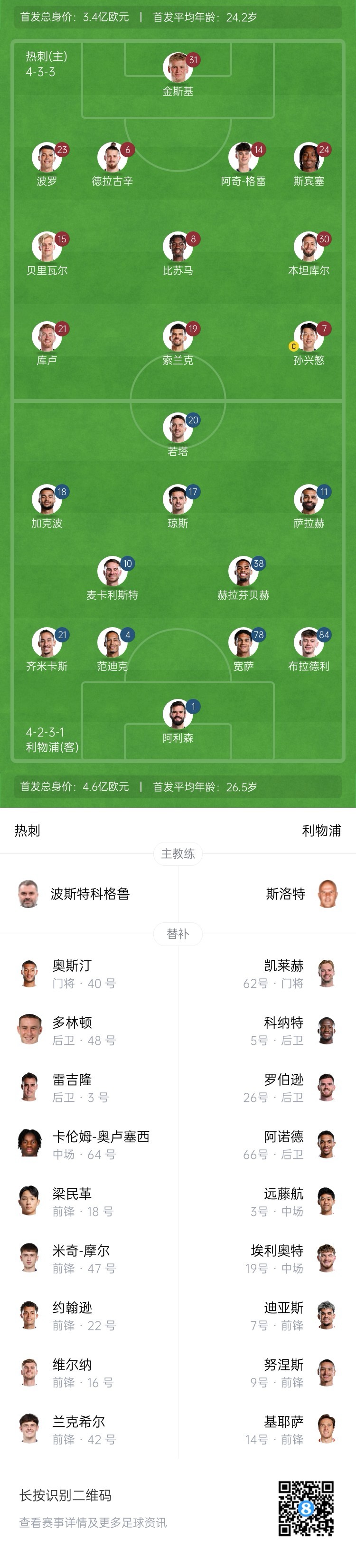 除特別注明外,本站所有內(nèi)容均為九球直播整理排版,轉(zhuǎn)載請注明出處:聯(lián)賽杯-熱刺vs利物浦首發(fā):薩拉赫PK孫興慜,若塔首發(fā)梁民革替補