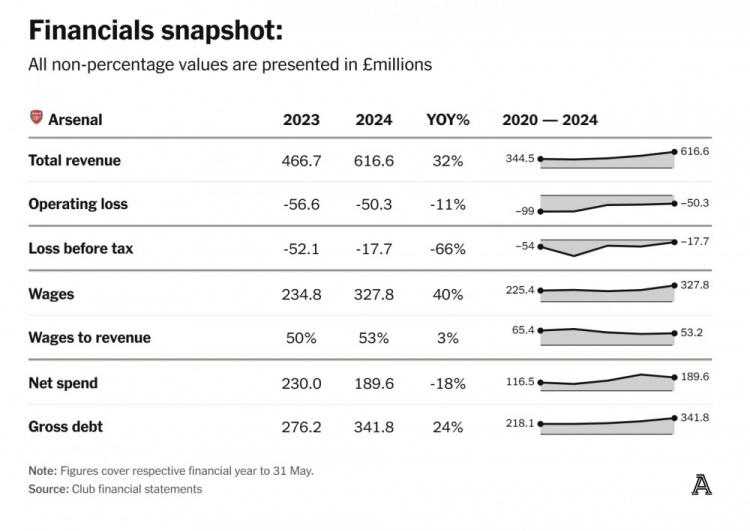 也正因為如此,在阿森納已經(jīng)連續(xù)六年出現(xiàn)虧損的情況下,PSR已然成為槍手所有者和球迷共同關(guān)心的話題。但說實話,大家也不需要過多擔(dān)心——盡管他們不能像其他球隊那樣申報高額虧損。