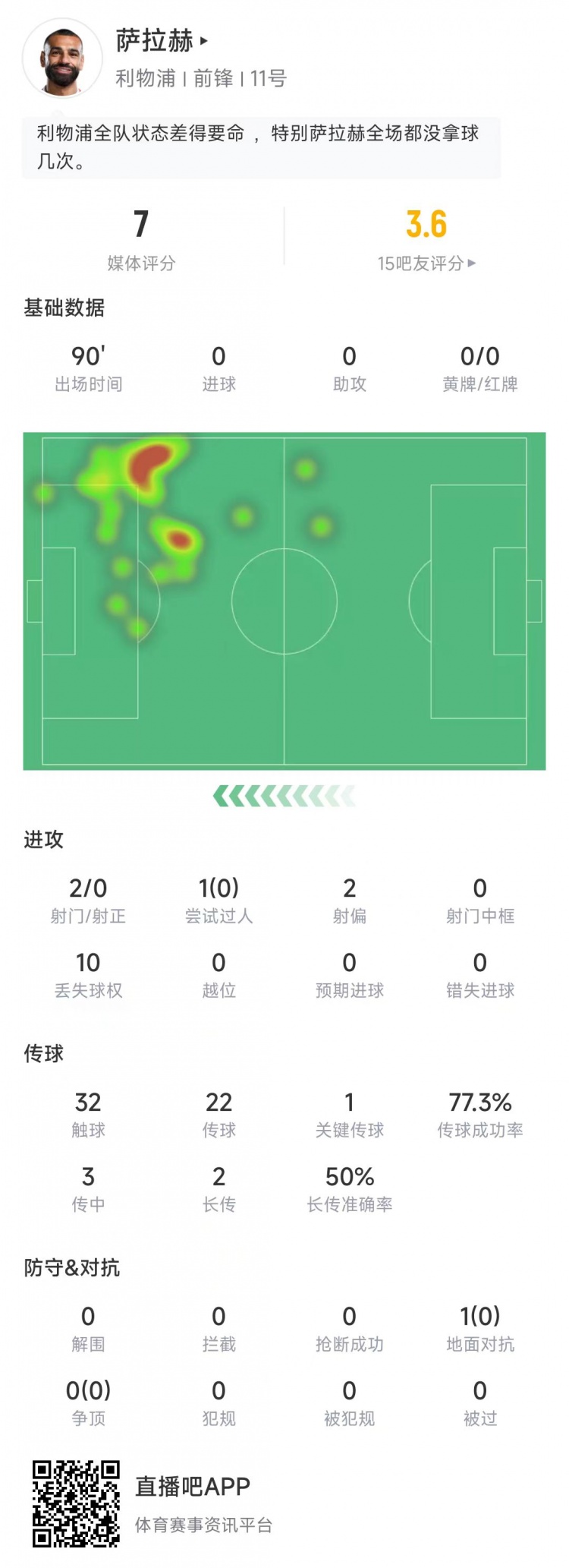 薩拉赫本場比賽數(shù)據(jù):