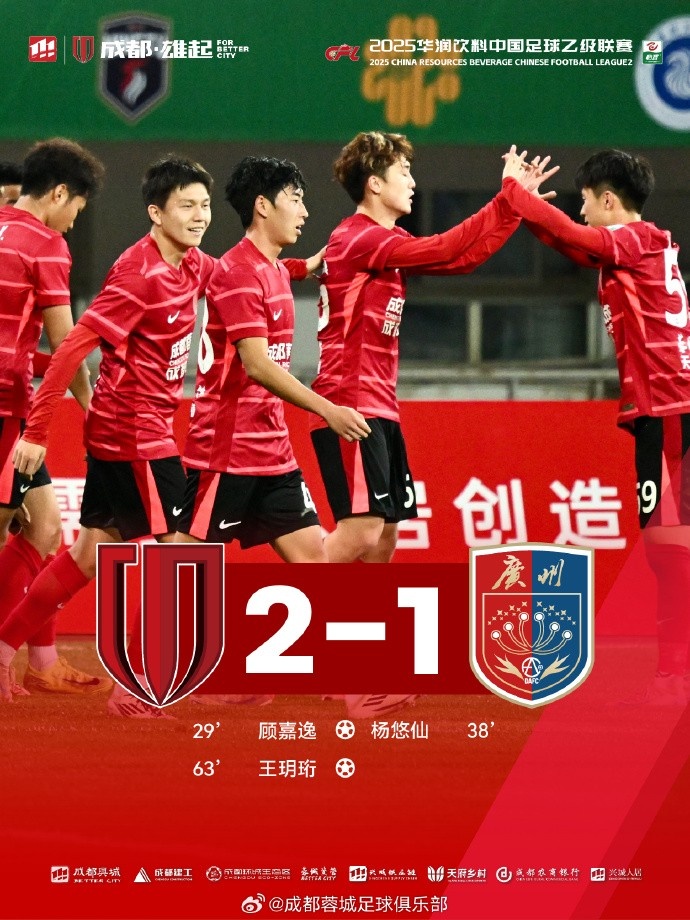 上半場余彥鋒獻(xiàn)助攻,顧嘉逸進(jìn)球建功。隨后對方打入一球,半場比分1-1。下半場顧嘉逸助攻,王玥珩進(jìn)球,比分來到2-1,蓉城青年軍奮勇拼搏,將領(lǐng)先的比分保持到最后一刻!衷心感謝今日到場為蓉城將士們吶喊助威的4827位球迷朋友們!成都,雄起!