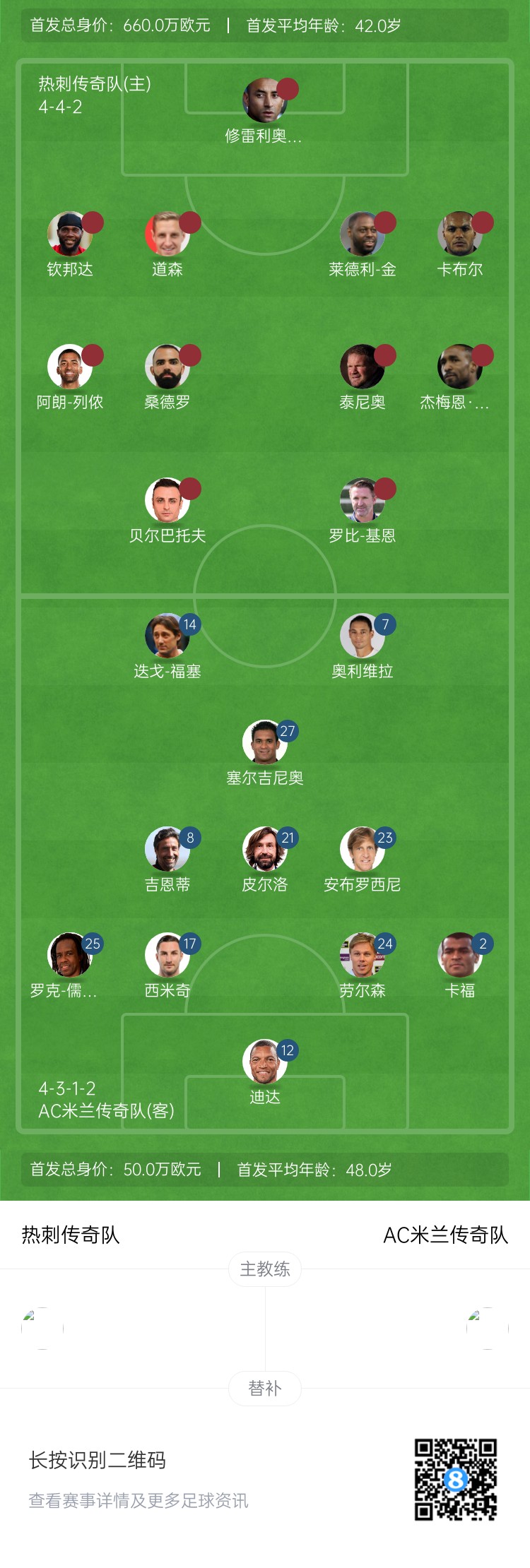 除特別注明外,本站所有內(nèi)容均為九球直播整理排版,轉(zhuǎn)載請(qǐng)注明出處:欺負(fù)老頭傳奇賽米蘭半場(chǎng)0-5熱刺 首發(fā)平均48歲踢42歲“小伙”