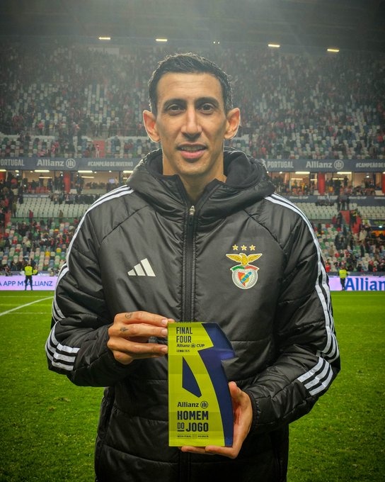 此役36歲迪馬利亞為本菲卡首發(fā)出戰(zhàn),他打進2球,當(dāng)選本場比賽最佳球員。