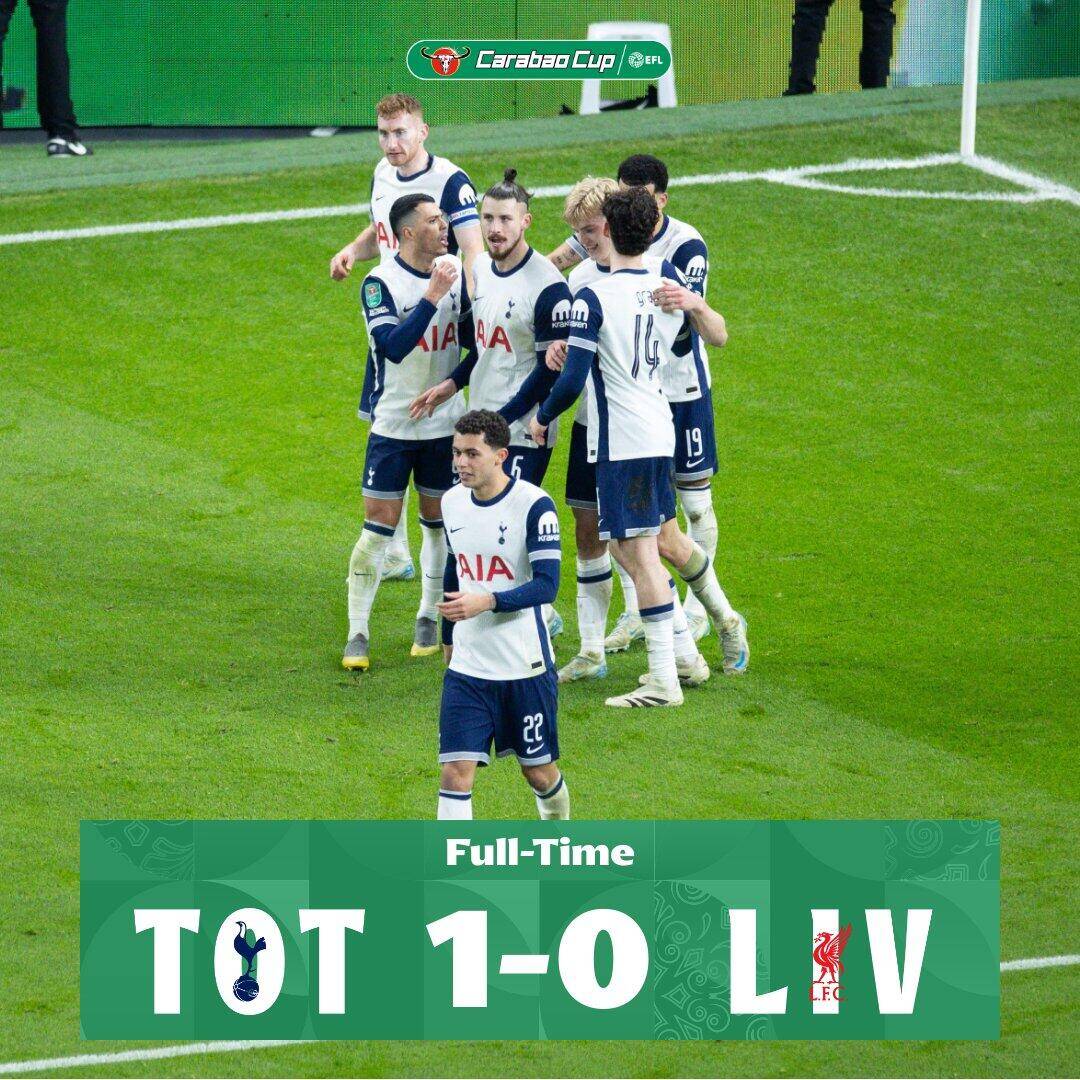 英聯杯半決賽首回合,熱刺1-0利物浦取得先機,紅軍24場不敗遭終結。上半場,德拉古辛低射造險,本坦庫爾重傷離場,寬薩傷退;下半場,阿利森失誤險送禮,波羅失良機,索蘭克助攻貝里瓦爾抽射打破僵局。