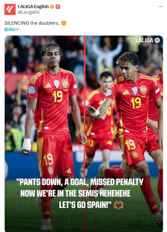 發(fā)布時(shí)間:2025年03月24日 18:50點(diǎn)擊:欄目:足球新聞 【相關(guān)新聞】亞馬爾回應(yīng)范德法特:球褲拉低、打進(jìn)一球、點(diǎn)球失手、晉級四強(qiáng) 除特別注明外,本站所有內(nèi)容均為九球直播整理排版,轉(zhuǎn)載請注明出處:遭范德法特批評?西甲官推曬亞馬爾慶祝照:讓質(zhì)疑者們閉嘴 本文標(biāo)簽: 足球 西甲 巴塞羅那 國家隊(duì) 西班牙