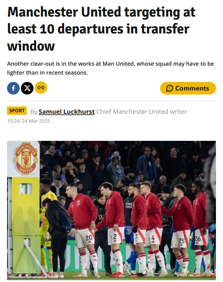 03月24日訊 據(jù)《曼徹斯特晚報(bào)》首席記者Samuel Luckhurst報(bào)道,曼聯(lián)再次計(jì)劃在今年夏窗對(duì)球隊(duì)陣容進(jìn)行大清洗,曼聯(lián)希望至少送走10名陣中球員。
