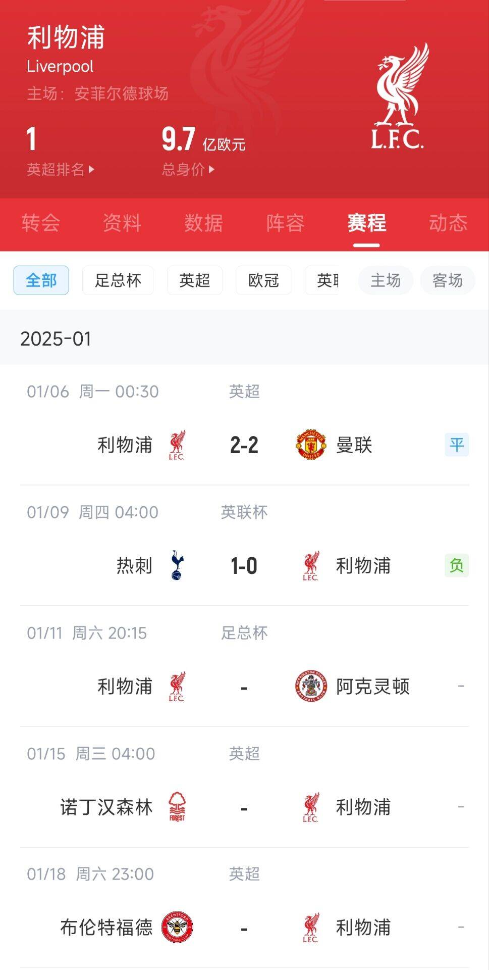 之后,利物浦還將在客場(chǎng)接連對(duì)陣諾丁漢森林和布倫特福德。森林是英超積分榜第3,也是送給紅軍英超唯一一敗的對(duì)手;布倫特福德則是主場(chǎng)龍,他們?cè)诟窭锓夜珗@球場(chǎng)的戰(zhàn)績(jī)很亮眼(7勝1平2負(fù),英超第3)。