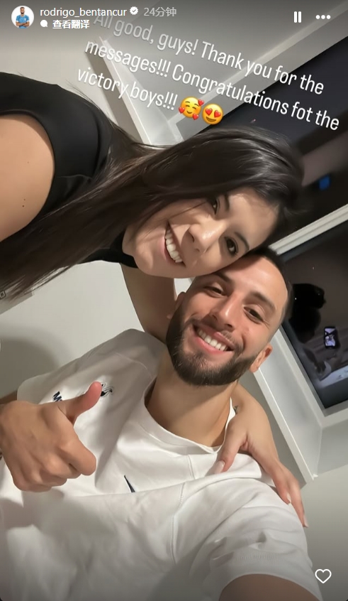 本坦庫爾被送往醫(yī)院接受進一步檢查,他在社交媒體上曬出與女友的合照,配文:“一切都好,伙計們!感謝大家發(fā)來的信息!祝賀小伙子們?nèi)〉脛倮?!?/p>