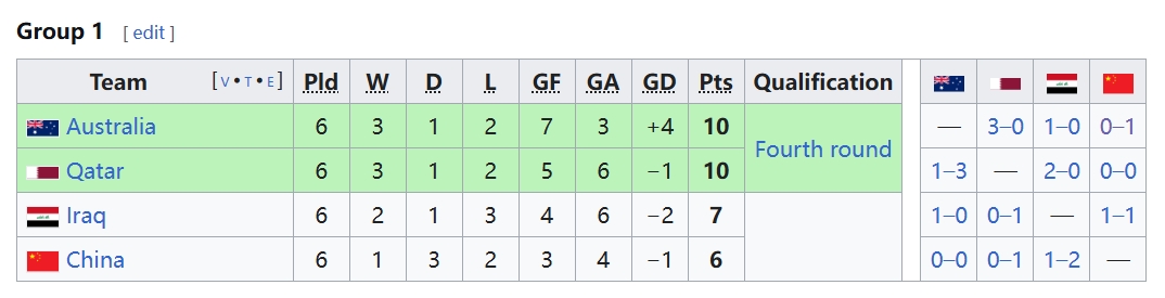 這也創(chuàng)造國足對澳大利亞在世預(yù)賽的最長不勝紀錄,此前的紀錄發(fā)生在1985年9月-2008年3月,國足當(dāng)時對澳大利亞連續(xù)4場不勝,戰(zhàn)績同樣是1平3負。