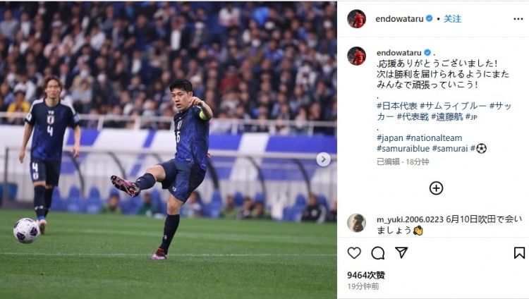 發(fā)布時間:2025年03月25日 22:50點(diǎn)擊:欄目:足球新聞 3月25日訊 世預(yù)賽18強(qiáng)賽C組第8輪,日本隊主場0-0與沙特隊?wèi)?zhàn)平,不過日本隊已經(jīng)提前晉級2026世界杯。賽后,日本隊中場遠(yuǎn)藤航更新社媒。遠(yuǎn)藤航社媒寫道:感謝大家的支持!下場讓我們一起努力,迎接勝利。 除特別注明外,本站所有內(nèi)容均為九球直播整理排版,轉(zhuǎn)載請注明出處:戰(zhàn)平沙特&已晉級世界杯!遠(yuǎn)藤航:感謝大家的支持!下場努力爭勝 本文標(biāo)簽: 足球 五洲 J聯(lián)賽 日本