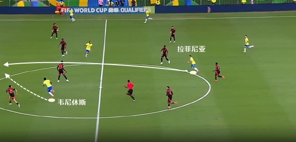 不過(guò)上一場(chǎng)面對(duì)哥倫比亞,韋尼休斯在一開(kāi)場(chǎng)就利用速度前插后制造點(diǎn)球,送出直塞球的,恰恰是回撤的拉菲尼亞。