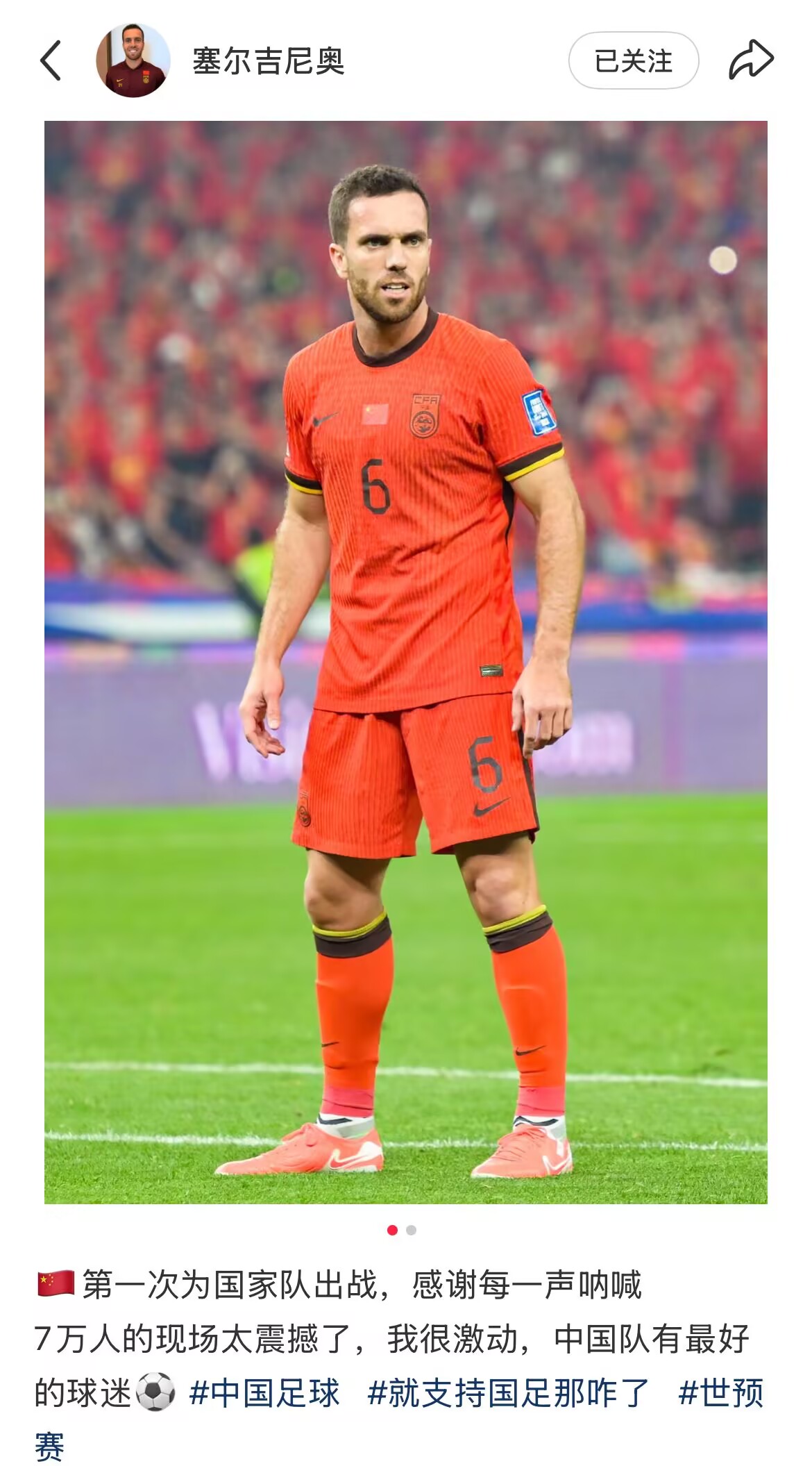 發(fā)布時(shí)間:2025年03月26日 00:50點(diǎn)擊:欄目:足球新聞 03月26日訊 國足世預(yù)賽0-2不敵澳大利亞,歸化球員塞爾吉尼奧替補(bǔ)出場,賽后他社媒發(fā)文慶祝國足首秀。塞爾吉尼奧:“第一次為國家隊(duì)出戰(zhàn),感謝每一聲吶喊。7萬人的現(xiàn)場太震撼了,我很激動(dòng),中國隊(duì)有最好的球迷?!?/p> 除特別注明外,本站所有內(nèi)容均為九球直播整理排版,轉(zhuǎn)載請(qǐng)注明出處:塞鳥發(fā)文慶祝國足首秀:7萬人的現(xiàn)場太震撼了 中國隊(duì)有最好的球迷 本文標(biāo)簽: 足球 中超 中國足球 北京國安 中國男足