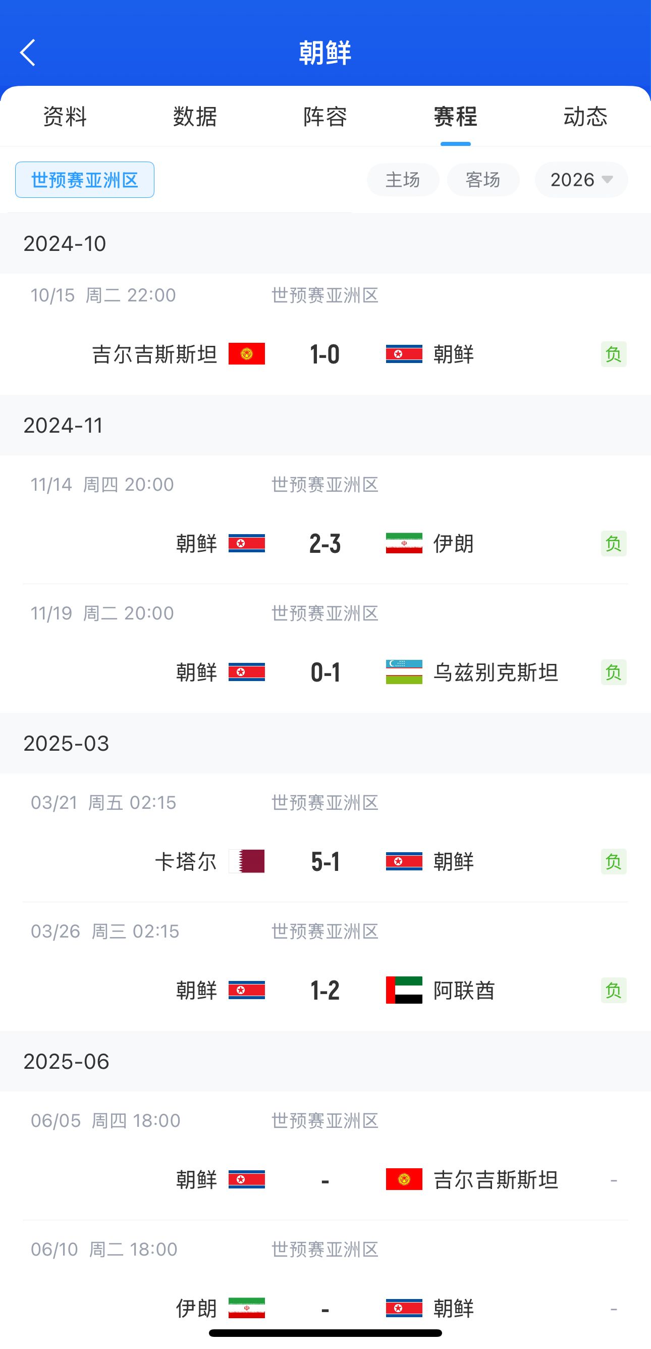 8輪過后,朝鮮2平6負(fù)未嘗一勝僅積2分,進(jìn)7球、丟16球、凈勝球-9,剩2輪落后同組第4卡塔爾8分,朝鮮提前2輪從18強(qiáng)賽出局,成為本屆首支出局球隊(duì)。