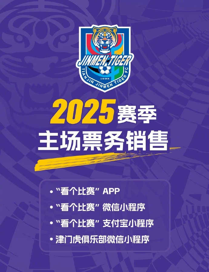 開(kāi)售提示! 2025華潤(rùn)飲料中超聯(lián)賽第4輪天津津門(mén)虎VS北京國(guó)安的比賽將于今晚20:00開(kāi)售!