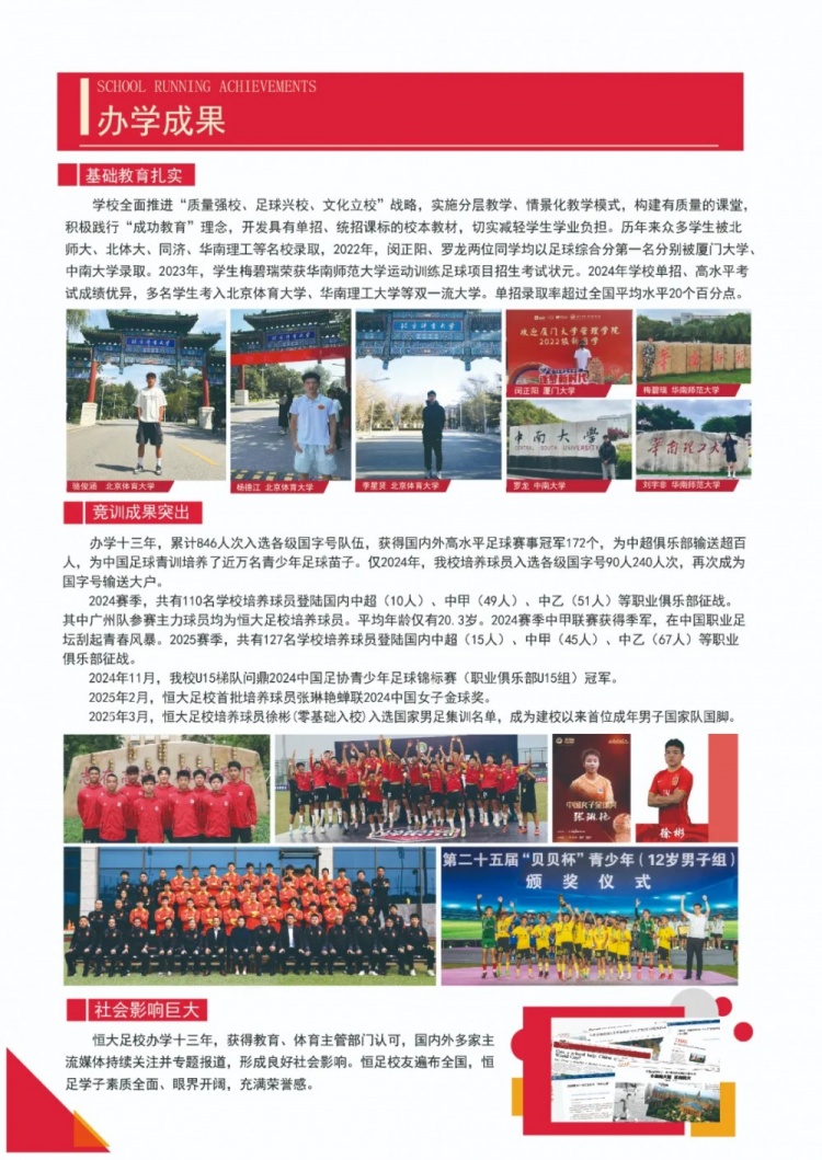 3月26日訊 恒大足球?qū)W校官方發(fā)布2025全國招生簡章,招生對象包括足球精英勝、足球/體育特長生等。
