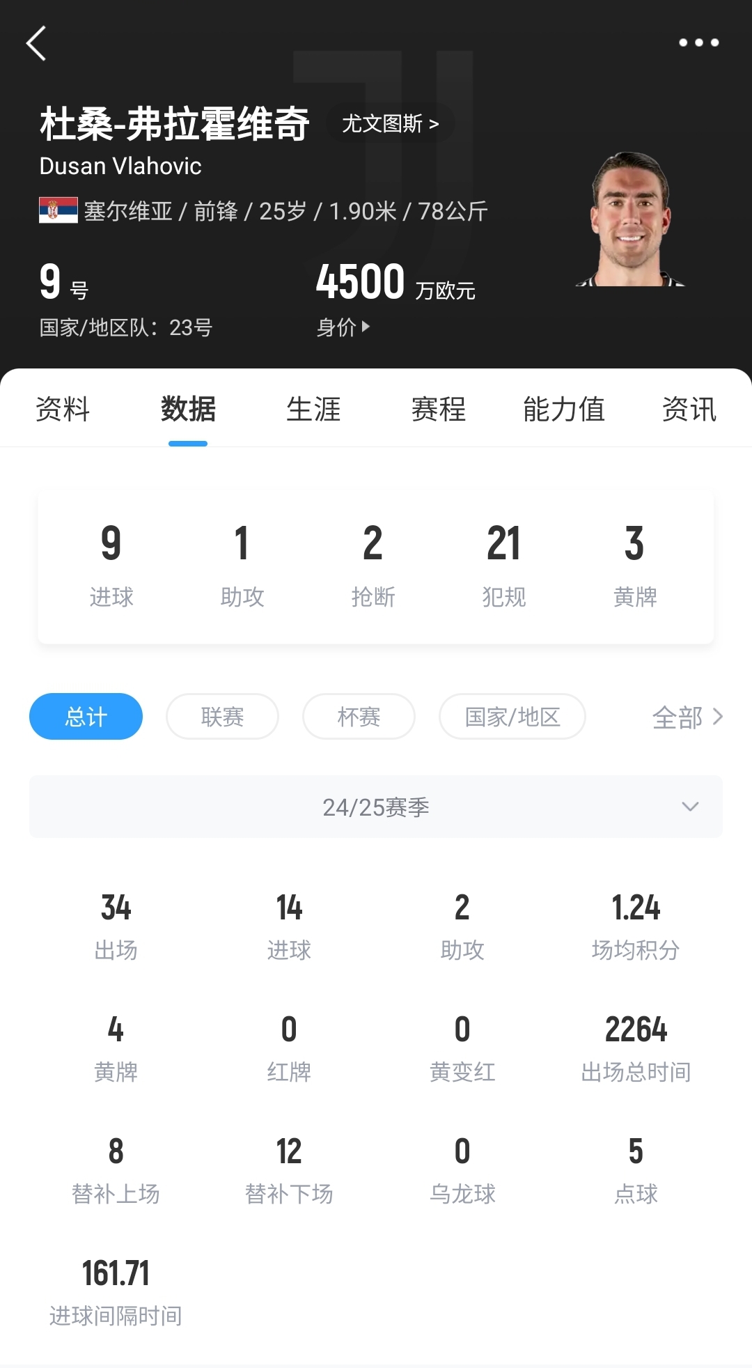 本賽季至今,弗拉霍維奇出戰(zhàn)34場比賽,貢獻14球2助,尤文戰(zhàn)績不佳,近日已經(jīng)官宣主帥莫塔下課,由圖多爾接任。