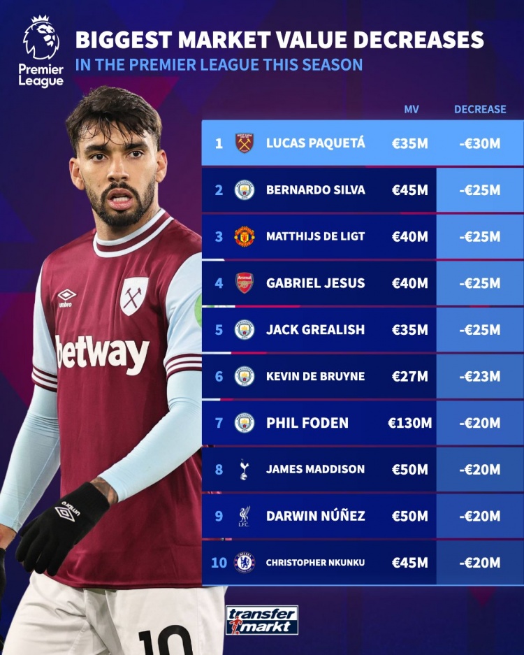 帕奎塔(西漢姆,3500萬歐)——下跌3000萬歐