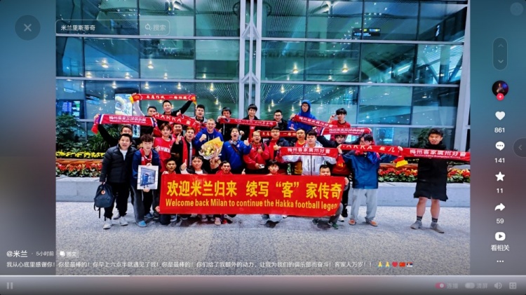 本周一,米蘭-里斯蒂奇更新社媒,確認(rèn)將繼續(xù)執(zhí)教梅州客家,他于今天抵達(dá)中國,不少梅州客家球迷前往機(jī)場接機(jī)。