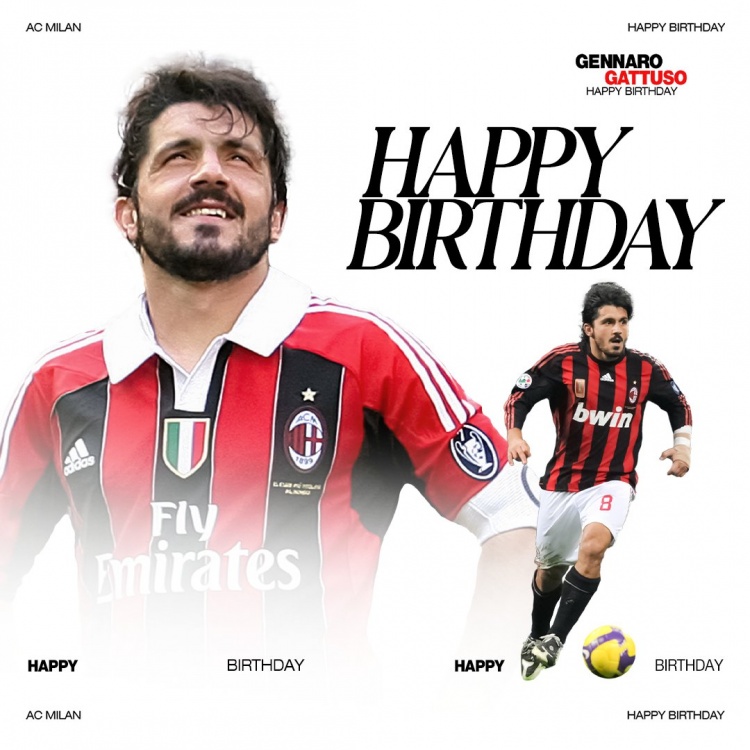 1月9日訊 今天是米蘭名宿加圖索47歲生日,米蘭官方為他送上祝福。