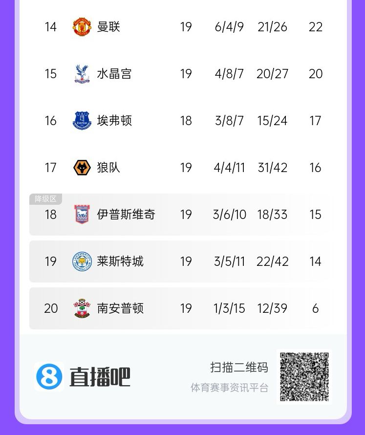 在主場0-2不敵紐卡之后,曼聯(lián)僅高出降級區(qū)7分。賽后阿莫林也承認,曼聯(lián)為保級而戰(zhàn)“是有可能的”。