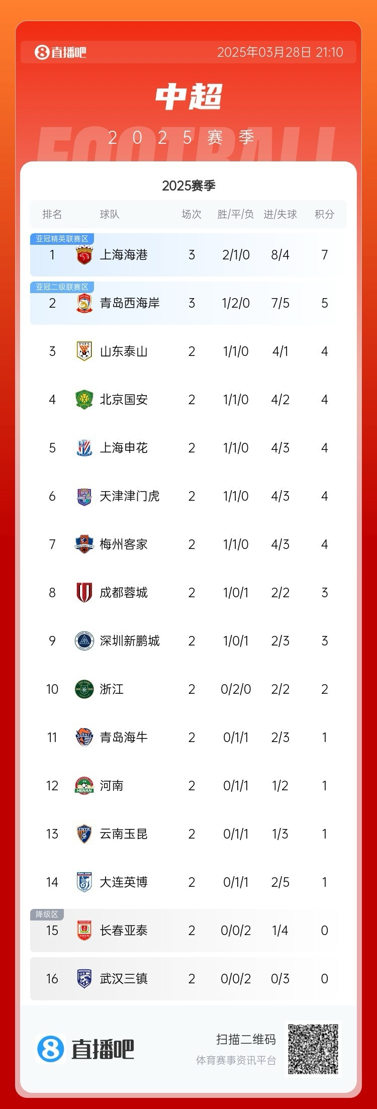 發(fā)布時(shí)間:2025年03月28日 22:51點(diǎn)擊:欄目:足球新聞 3月28日訊 隨著海港戰(zhàn)平西海岸,中超3輪后已經(jīng)沒有全勝的球隊(duì)。新賽季中超前2輪后,僅有衛(wèi)冕冠軍上海海港保持全勝,他們主場分別3-1擊敗深圳新鵬城、2-0擊敗長春亞泰。本輪客戰(zhàn)青島西海岸,海港在1-3落后時(shí)連追兩球絕平對手,無緣聯(lián)賽3連勝,這也意味著中超3輪后沒有了全勝球隊(duì)。 除特別注明外,本站所有內(nèi)容均為九球直播整理排版,轉(zhuǎn)載請注明出處:海港3-3絕平西海岸,本賽季中超3輪后已無全勝球隊(duì) 本文標(biāo)簽: 足球 中超 中國足球 上海海港