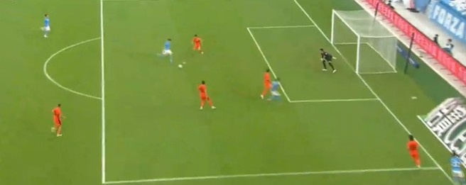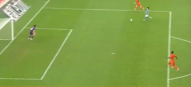 第25分鐘,列昂索前場(chǎng)接直塞球過掉馬鎮(zhèn)后推射被門線解圍。↓