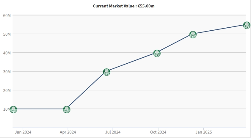 03月28日訊 德轉(zhuǎn)今日更新了巴甲的球員身價(jià),即將在下賽季加盟切爾西的17歲小將埃斯特旺身價(jià)上漲500萬(wàn)歐,來(lái)到5500萬(wàn)歐。