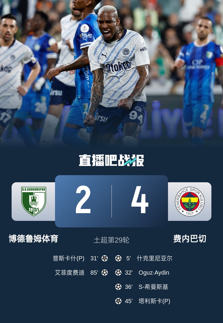 費(fèi)內(nèi)巴切本輪4-2擊敗博德魯姆體育,費(fèi)內(nèi)巴切上半場(chǎng)就多點(diǎn)開花,比賽最終費(fèi)內(nèi)巴切4-2取勝。