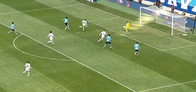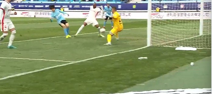 第42分鐘,拉布亞德右路精準(zhǔn)斜傳到禁區(qū)馬萊萊推射沒有打上被吳亞珂解圍,第二點(diǎn)廖錦濤抽射打高了。↓