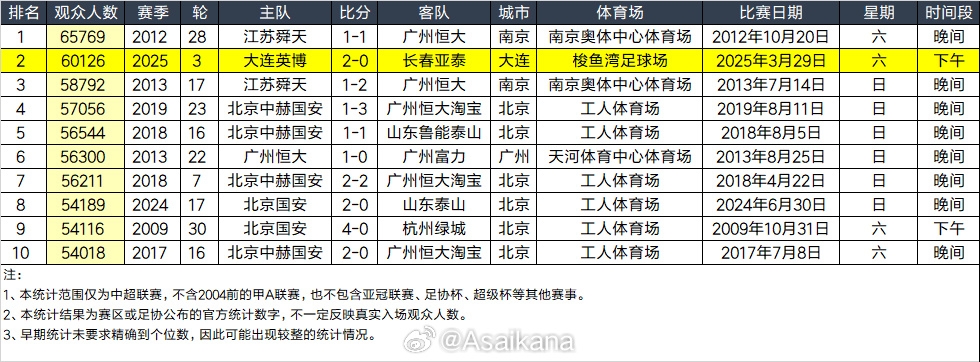 朱藝:今天,本輪(2025賽季中超第3輪)大連英博和長(zhǎng)春亞泰的比賽吸引了60126名觀眾現(xiàn)場(chǎng)觀戰(zhàn),這也是大連英博的首個(gè)中超主場(chǎng)比賽。這一數(shù)據(jù)在中超歷史上排名第二,僅次于2012年南京奧體的65769人。這也是繼那場(chǎng)之后中超聯(lián)賽第二次有超過六萬名觀眾現(xiàn)場(chǎng)觀賽。