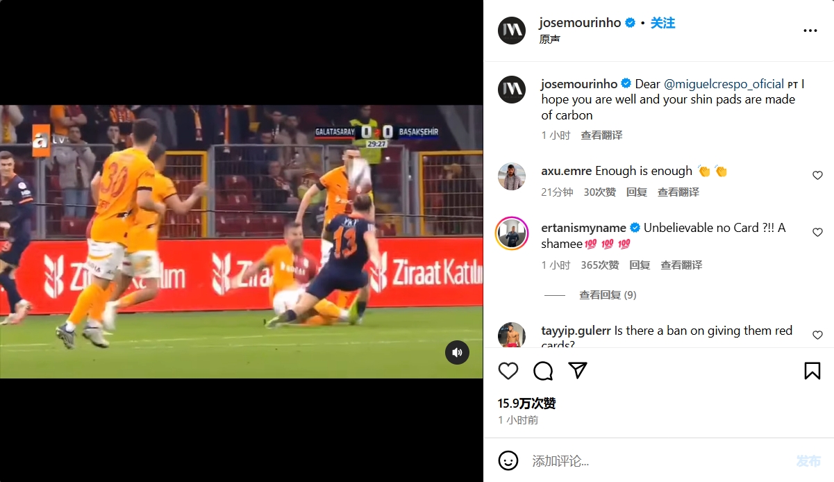 除特別注明外,本站所有內(nèi)容均為九球直播整理排版,轉載請注明出處:火力不斷穆帥曬加拉塔薩雷后衛(wèi)飛鏟未判犯規(guī),4天內(nèi)3次開炮?