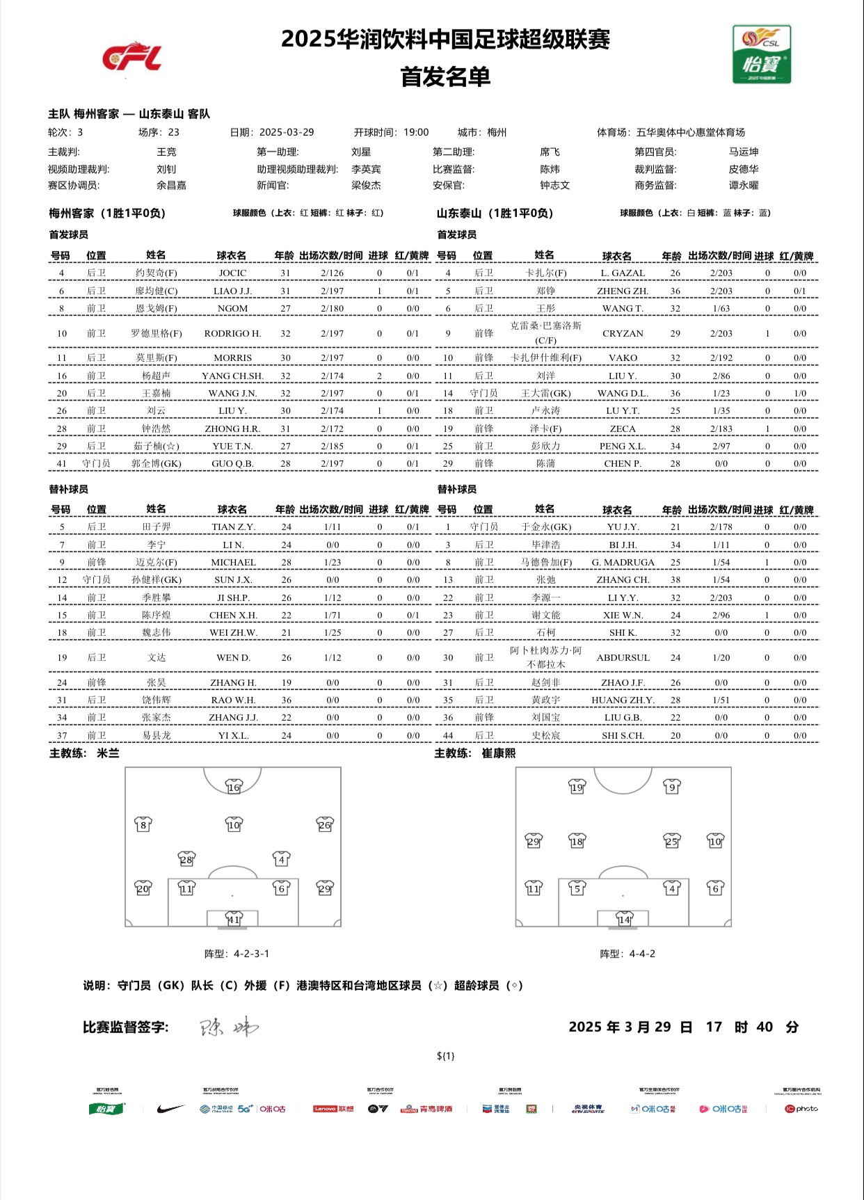 發(fā)布時(shí)間:2025年03月29日 19:26點(diǎn)擊:欄目:足球新聞 除特別注明外,本站所有內(nèi)容均為九球直播整理排版,轉(zhuǎn)載請(qǐng)注明出處:大齡德比梅州首發(fā)平均年齡29.3歲 山東泰山“破3”達(dá)到30.1歲 本文標(biāo)簽: 足球 中超 中國(guó)足球 山東泰山 梅州客家