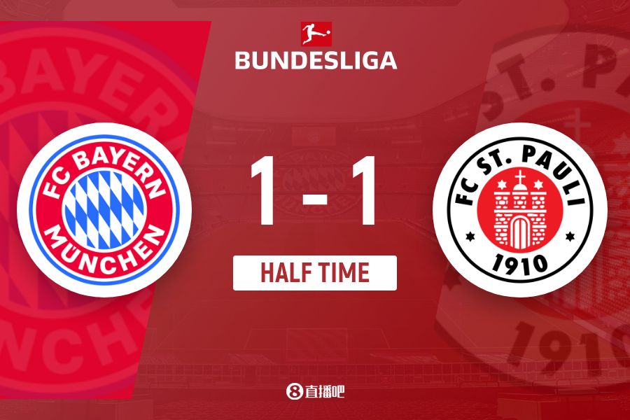 上半場(chǎng)傷停補(bǔ)時(shí)3分鐘,半場(chǎng)結(jié)束,拜仁暫1-1圣保利。