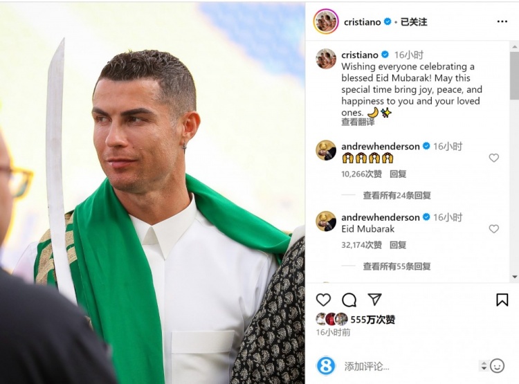 3月31日訊 C羅更新社媒動態(tài),為慶祝開齋節(jié)的人送上祝福。
