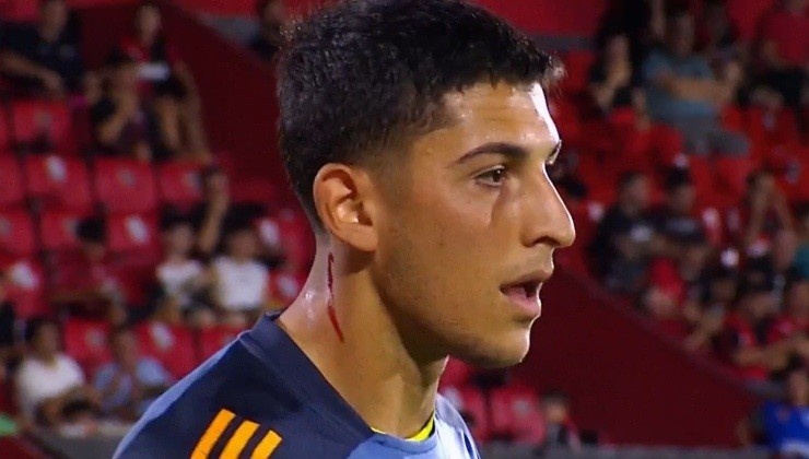 4月1日訊 在本周一進行的阿甲聯(lián)賽,博卡門將被對方球迷丟下的玻璃劃傷脖子后流血。