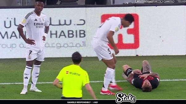 01月10日訊 皇馬vs馬洛卡第13分鐘,維尼修斯在邊線(xiàn)附近與馬菲奧對(duì)抗,維尼修斯后續(xù)手很輕地碰了馬菲奧一下,馬菲奧直接倒地!