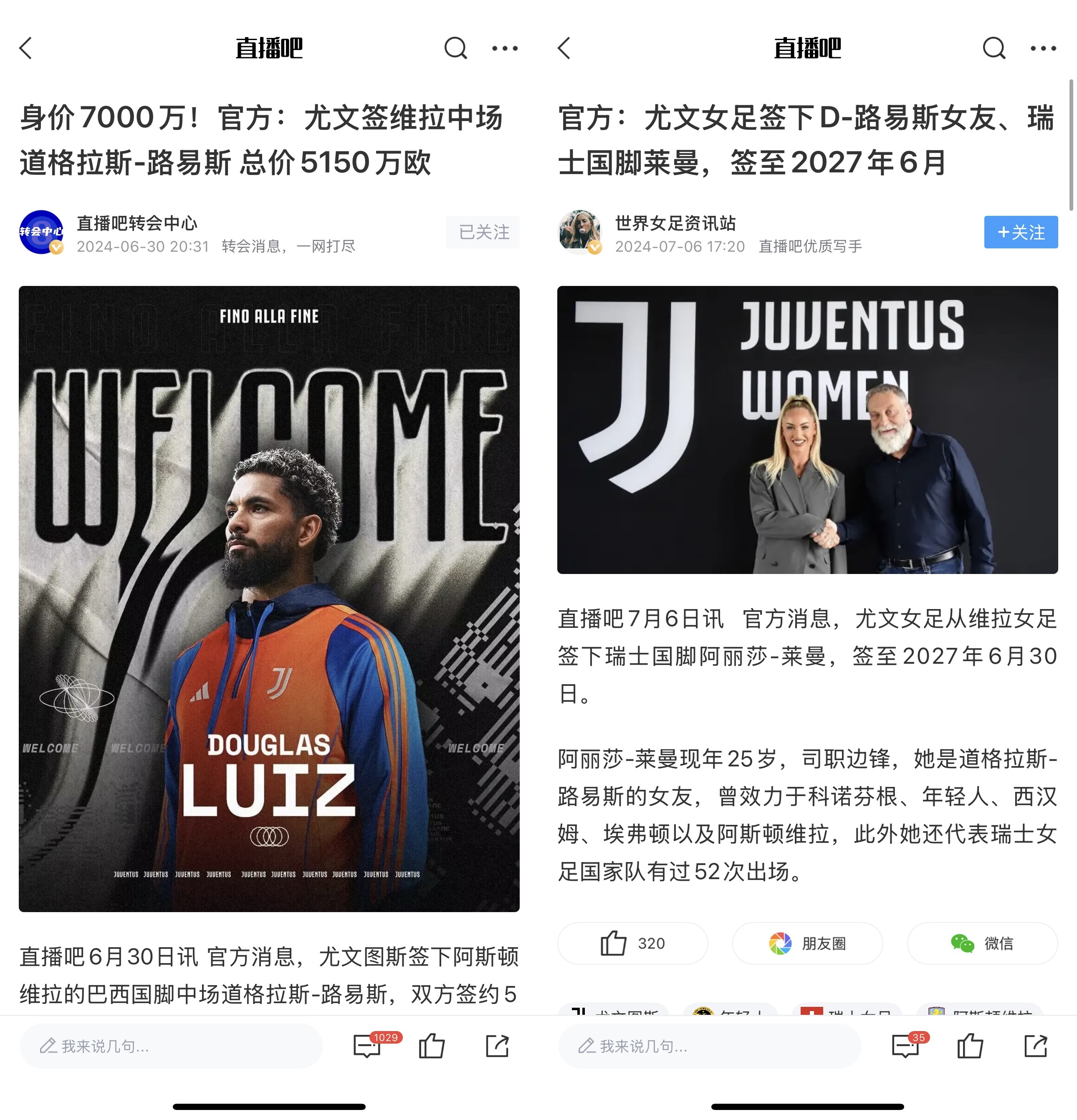 道格拉斯-路易斯的女友阿麗莎-萊曼去年夏窗也一同從維拉加盟尤文,簽約至2027年6月。阿莉莎-萊曼在場外有著巨大的關(guān)注度,她在ins的關(guān)注人數(shù)達(dá)到1681萬,tiktok關(guān)注人數(shù)也超過千萬。