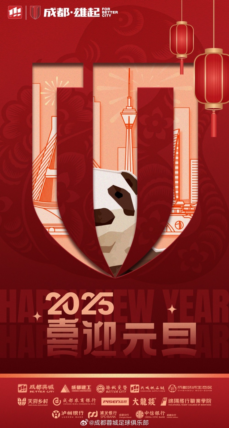 新的一年,正式開(kāi)篇!成都蓉城足球俱樂(lè)部向廣大球迷朋友們致以最溫暖的新年祝福!