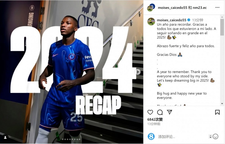 凱塞多在社交媒體上寫(xiě)道:“值得記住的一年,感謝所有支持我的人,讓我們?cè)?025年繼續(xù)放飛夢(mèng)想!”