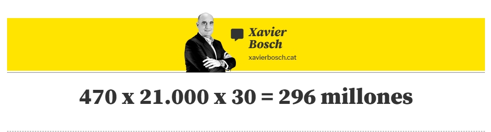 01月10日訊 世界體育報(bào)記者Xavier Bosch對巴薩出售VIP座位的情況進(jìn)行了“嘲弄”,文章標(biāo)題直抒胸臆:“470 x 21.000 x 30 = 2.96億”。
