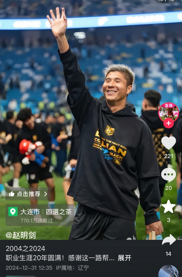 此前,趙明劍在社媒曬出自己20年職業(yè)生涯的多張照片并配文寫(xiě)道:“2004至2024。職業(yè)生涯20年圓滿(mǎn)!感謝這一路幫助過(guò)我的人,2025我的新篇章開(kāi)始了!”而并沒(méi)有明示自己退役。