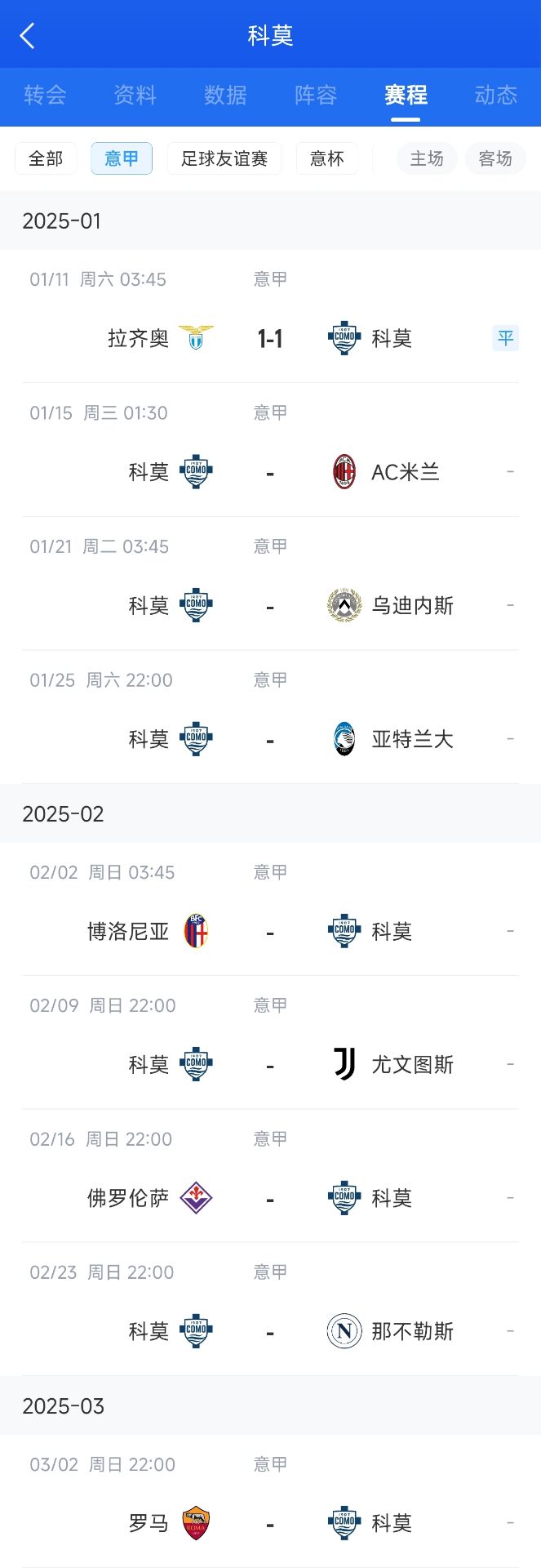 01月11日訊 意甲第20輪,科莫1-1戰(zhàn)平拉齊奧,客場(chǎng)搶下1分,拉開了他們魔鬼賽程的第一幕。