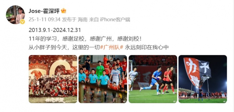 除特別注明外,本站所有內(nèi)容均為九球直播整理排版,轉(zhuǎn)載請(qǐng)注明出處:霍深坪告別廣州隊(duì):11年學(xué)習(xí)感謝足校,這里一切永遠(yuǎn)刻在我心中