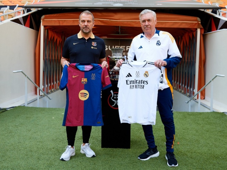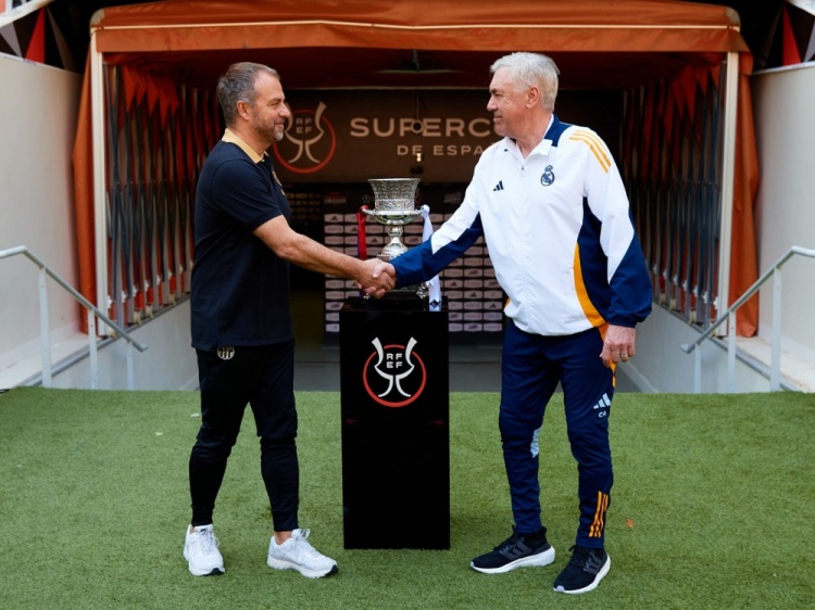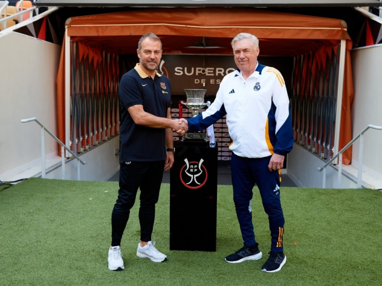 發(fā)布時(shí)間:2025年01月11日 17:50點(diǎn)擊:欄目:足球新聞 1月11日訊 北京時(shí)間1月13日凌晨3點(diǎn),皇馬與巴薩將在西超杯決賽中展開(kāi)較量。西超杯決賽之前,皇馬主帥安切洛蒂、巴薩主帥弗里克在獎(jiǎng)杯前面合影,兩人握手致意,拿著本隊(duì)球衣拍攝合照。 除特別注明外,本站所有內(nèi)容均為九球直播整理排版,轉(zhuǎn)載請(qǐng)注明出處:先禮后兵!安切洛蒂、弗里克西超杯決賽之前友好合影 本文標(biāo)簽: 足球 西甲 皇家馬德里 巴塞羅那 安切洛蒂