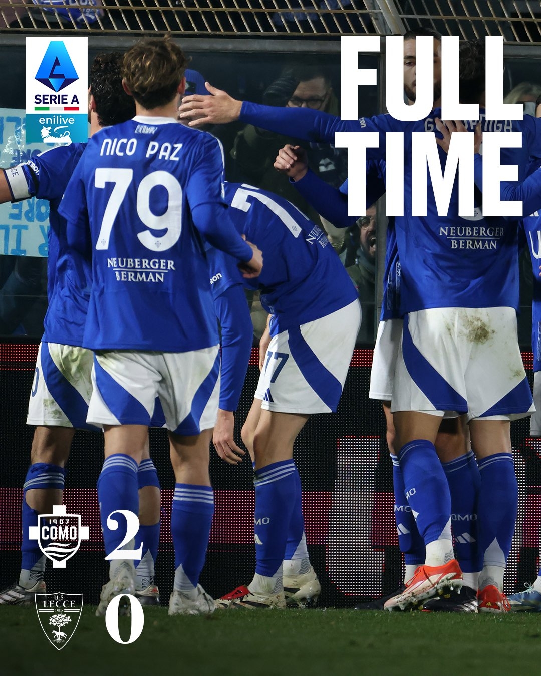 12月31日訊 意甲第18輪,科莫2-0擊敗萊切,拿下保級(jí)路上的關(guān)鍵3分。