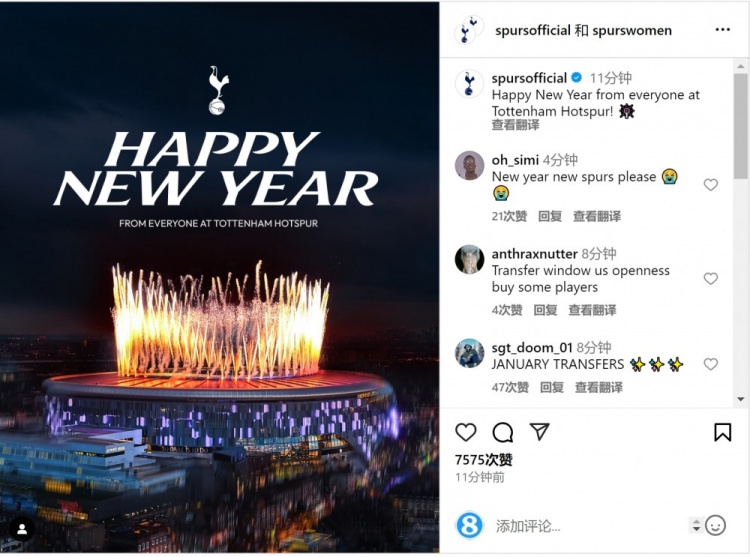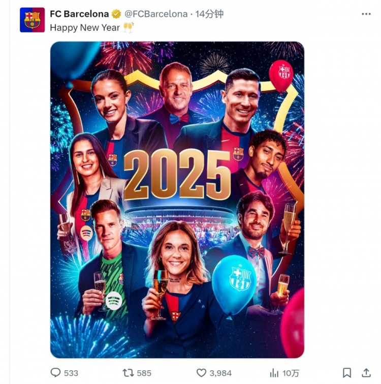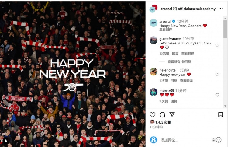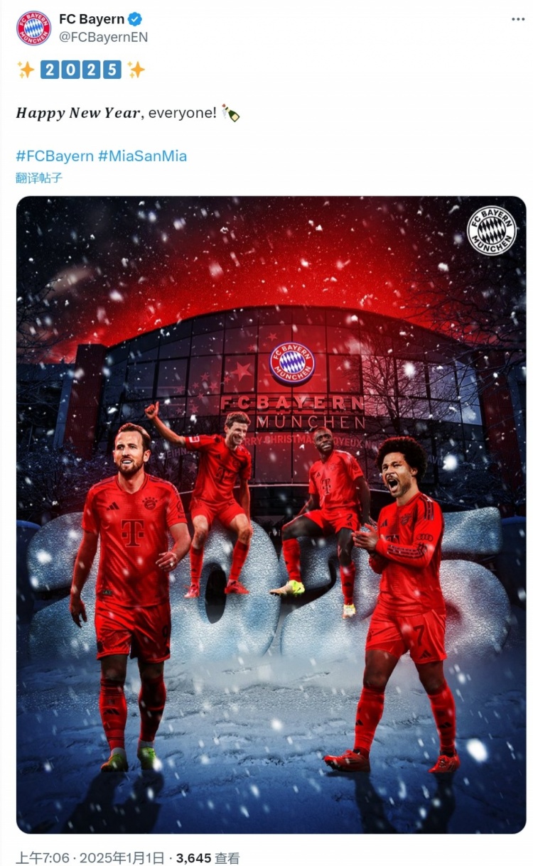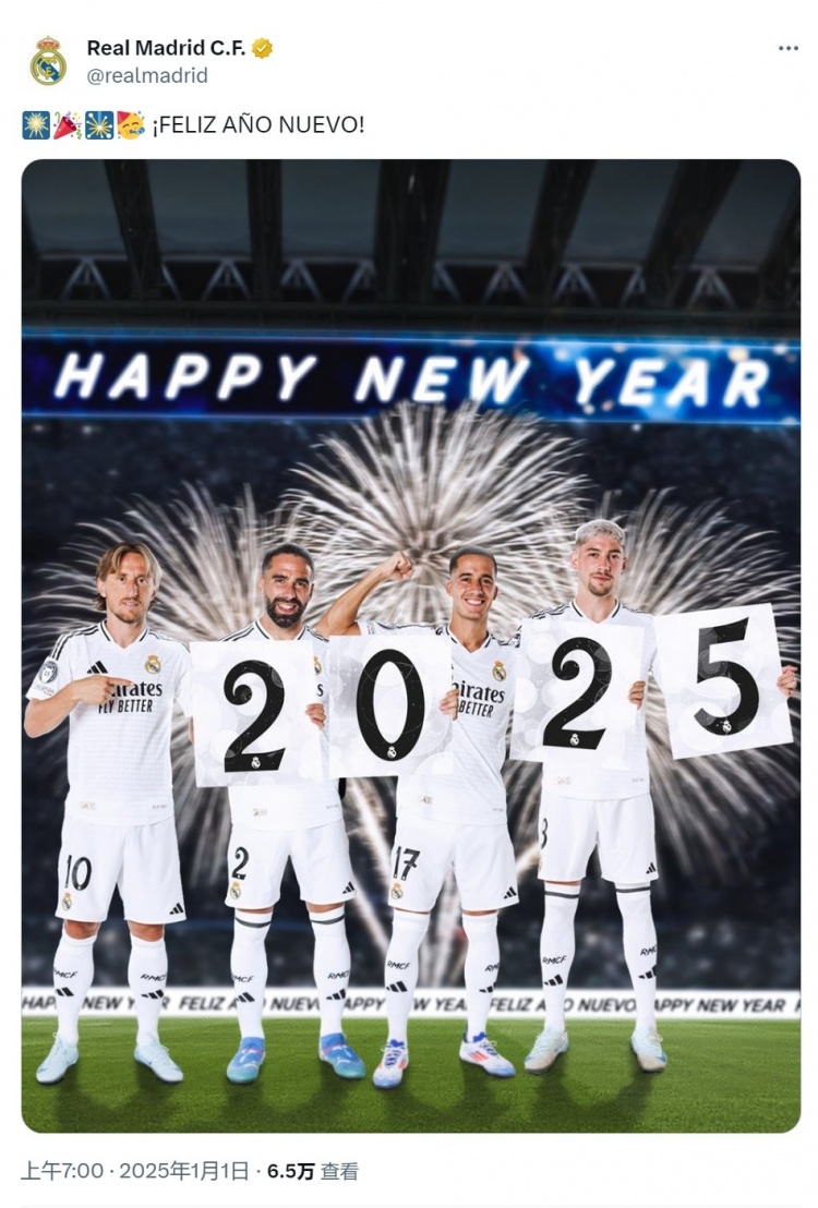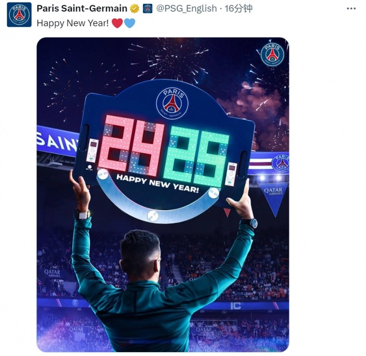 1月1日訊 新年到來之際,各家俱樂部官方社媒為球迷送上新年祝福。