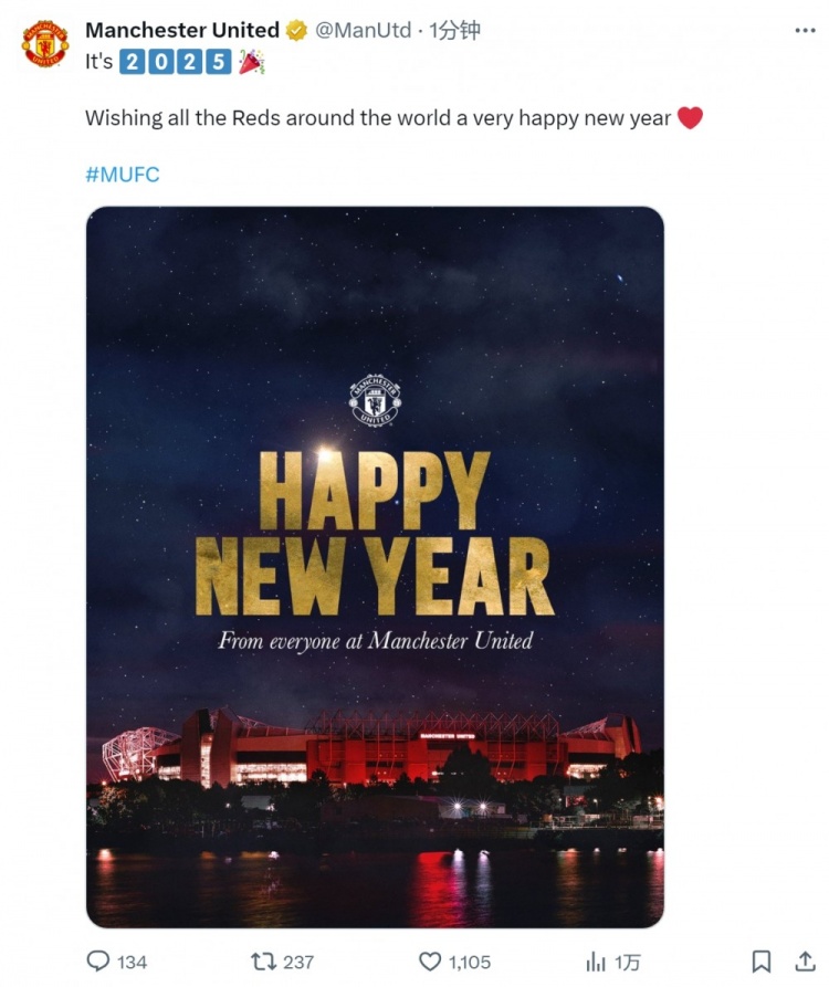 曼聯(lián)——2025年來了,祝全世界的紅魔球迷新年快樂