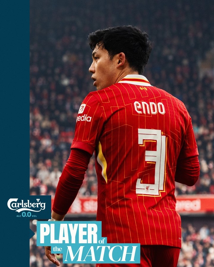 1月12日訊 足總杯第三輪,利物浦主場4-0大勝阿克靈頓。賽后,遠藤航當選利物浦隊內(nèi)最佳球員。