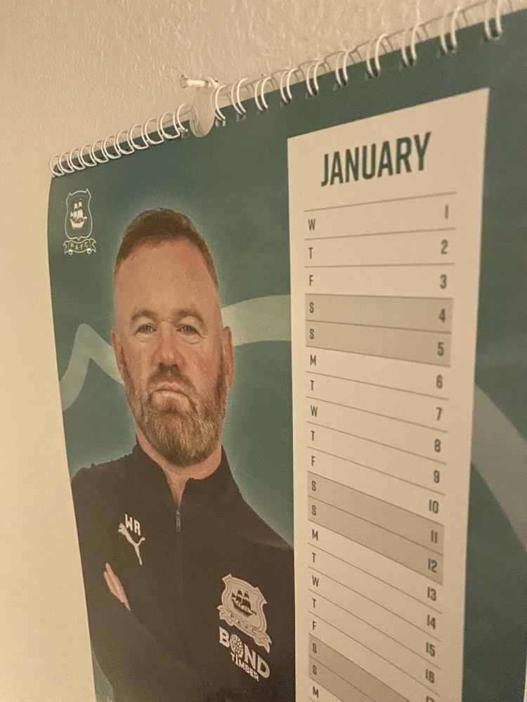 據(jù)《每日郵報(bào)》報(bào)道,帶有魯尼海報(bào)的普利茅斯新年掛歷現(xiàn)在五折出售。