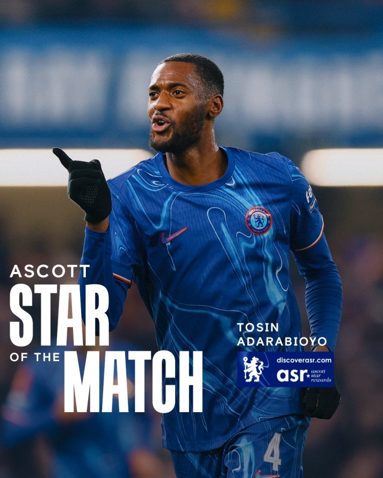 切爾西官方社媒曬出為阿達(dá)拉比奧尤制作的海報(bào),宣布這位中衛(wèi)當(dāng)選本場比賽隊(duì)內(nèi)最佳球員,配文:“兩粒進(jìn)球,一場零封?!?/p>